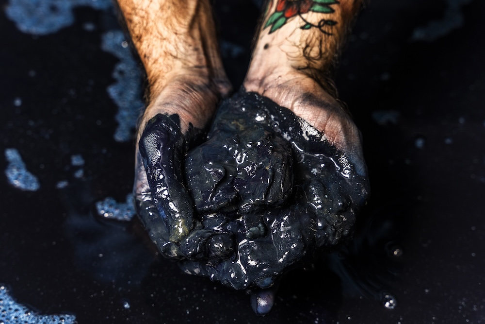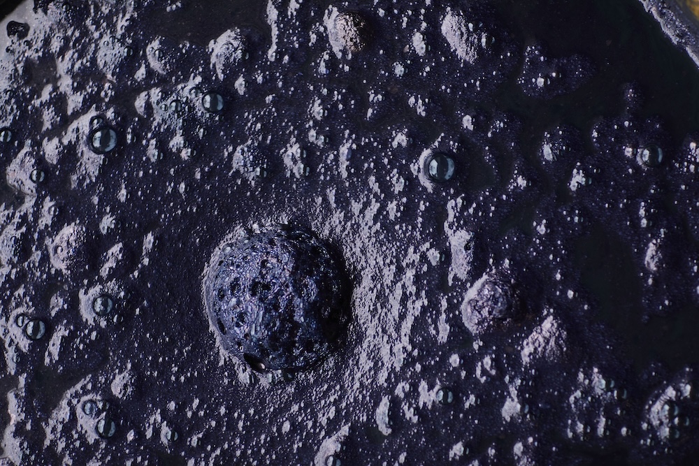琉球藍と一般的な藍染めの違いは植物と染料の製造方法。日本国内で多く用いられるのはタデアイですが、琉球藍はその名の通りリュウキュウアイを使用しています。さらに、染料の製造方法にも違いがあります。タデアイはスクモ法という植物を発酵させ熟成させた染料ですが、リュウキュウアイは沈殿藍という植物化色素を抽出した泥状の染料です。この沈殿藍という方法は全国でも沖縄だけで行われているそうです。