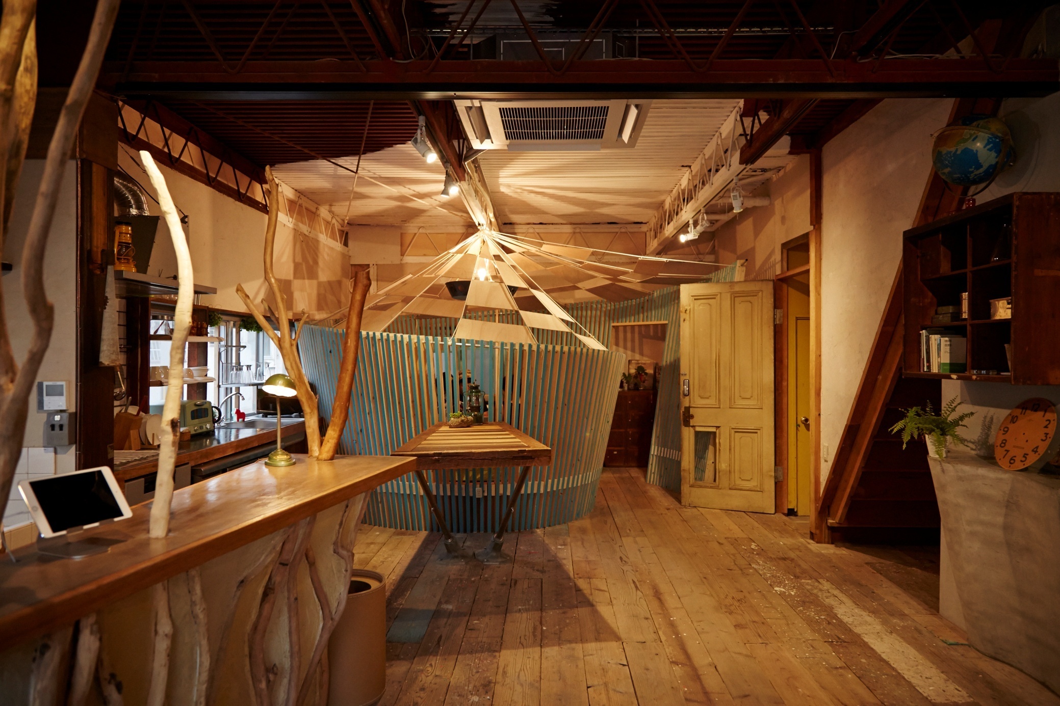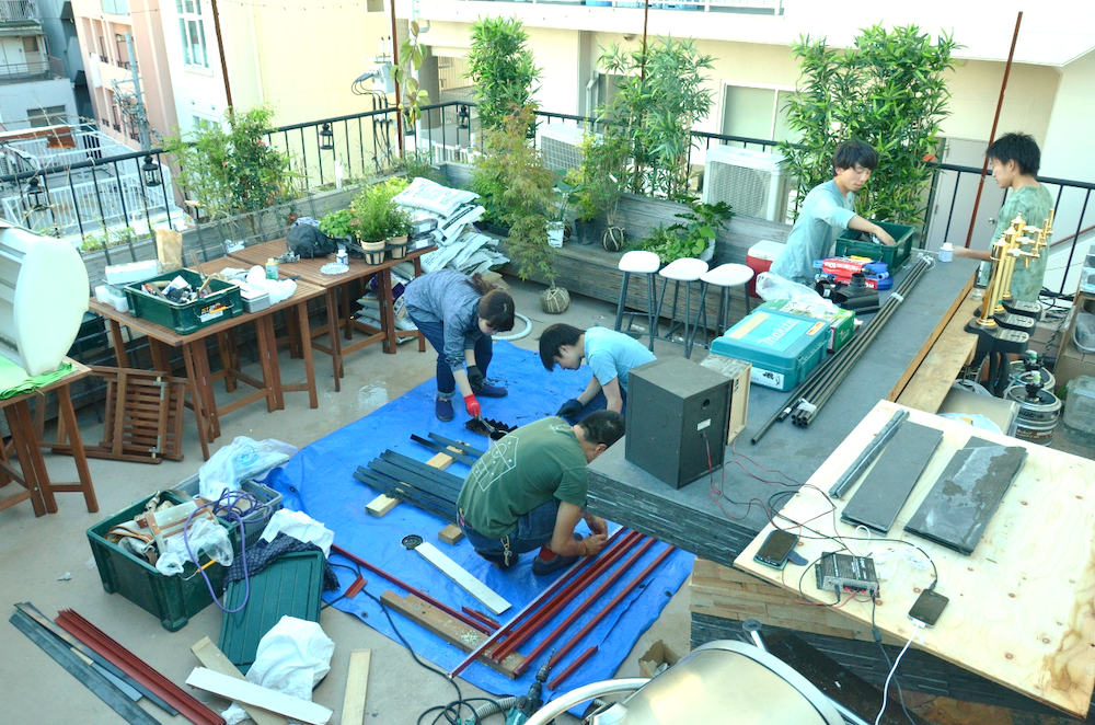 きっかけとなった物件は、神戸の元町にあるビルです。持ち主であるポールさんは、ビルの1階で英語教室を運営していました。ビルの2、3階をシェアハウスにして外国人と日本人が交流して住める場所に、そして4階はバーにしたいと話していたんです。彼は最初、全部DIYでやろうとしていたんですが、忙しくて手を付けられていない状況でした。そこで「僕が図面を引いて人を集めるから、材料費とご飯代だけ出してよ」と提案。彼が「いいじゃん」と乗ってくれたので、一緒につくり始めました。僕や彼の友人、英語教室の生徒さんなどが週末に集まり皆で作業をしました。屋上がきれいになった時には、流しそうめんをしたり、作業の後は集まって飲んだりしてとても楽しかったんです。ものづくりがコミュニケーションツールになって、国籍も言語も違う人たちが、完成のために力を合わせる。その楽しさに気づきました。当初はこれをビジネスにすることは想像していませんでした。でも完成したビルや、つくっている過程を見た人に「うちの物件もやってほしい」と依頼され、どんどん口コミで広がっていったんです。