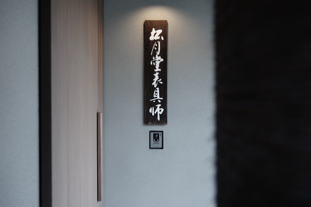 見えない部分の積み重ねが、美しさを形づくる。細部への意識が全体の佇まいを決定づけるという価値観は、栗田さんが跡を継いだ〈松月堂栗田表具店〉にも表れています。2016年に工房とショールームをフルリノベーション。外観はシックでモダン、いわゆる伝統の現場とは異なる佇まいに仕上げました。