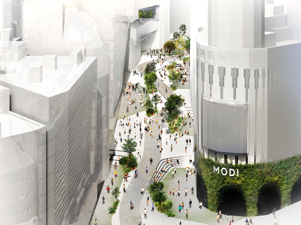 「SHIBUYA PARK AVE. 2040 DESIGN COMPETITION」で提案した渋谷公園通りのイメージ。(©︎ALTEMY/コンペの資料はこちらからご覧いただけます)