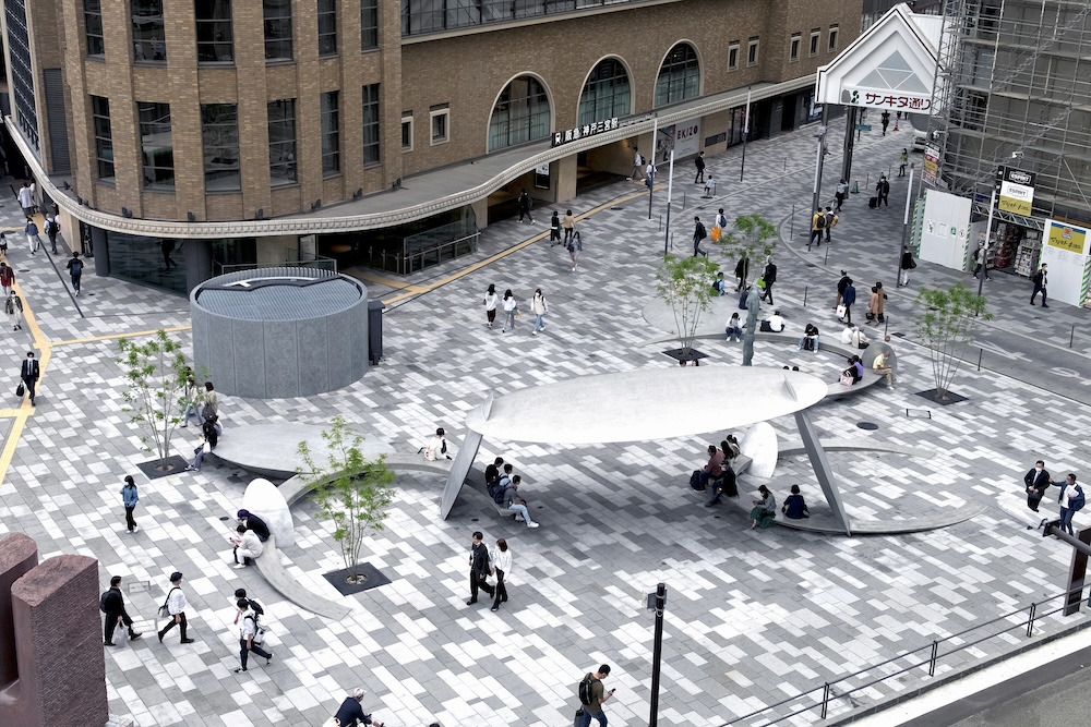 大規模な再整備プロジェクトが進む神戸市の三宮地区。その先駆けとして2021年に行われたのが、阪急神戸三宮駅前にある〈サンキタ広場〉のリニューアルです。市民がこよなく愛する広場は、どのように一新されたのでしょうか?設計を手掛けた建築家の津川恵理さんにお話を伺い、公共空間が抱える課題と光について考えます。