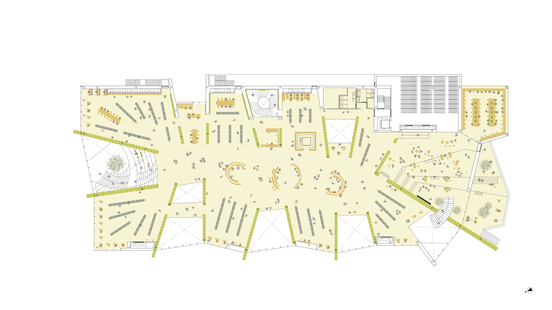人の行動を規定しない一番の方法は、フラットな状態をつくることです。部屋として区切り、グルーピングしてしまうと、世代を越えた交流は生まれません。今回は図書館という箱を作るのではなく、その箱をいかに壊すかが大きなテーマでした。