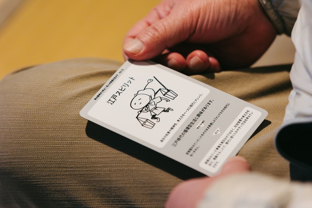 次は、「未来定番研究所オリジナル パターン・カード 未来のタネ」を用い、江戸と現代の循環型生活について考えていきます。