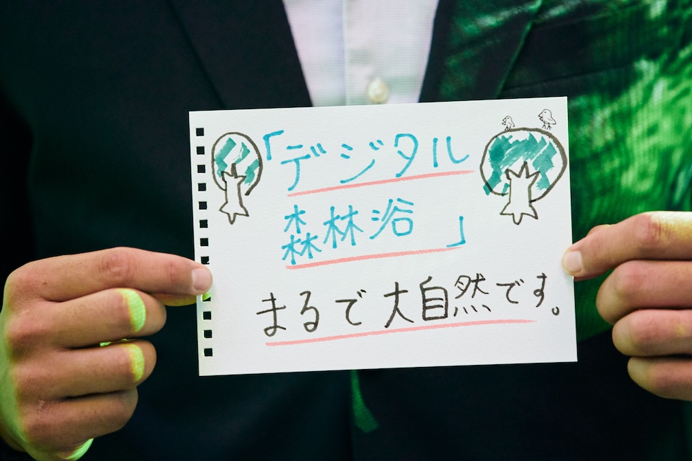 森林浴をすると、副交感神経が活性化して、怒りや焦りの感情が減るという効果があるといわれており、同様の環境をデジタルで再現。映像や音響、香りなどを駆使し、実際に森林浴をした時と近い水準の癒し効果が期待できるそう。